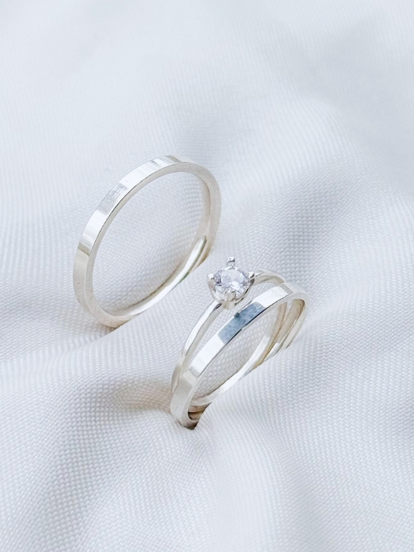 Par de Aliança Holanda 2mm + Solitário Encanto - Prata 950