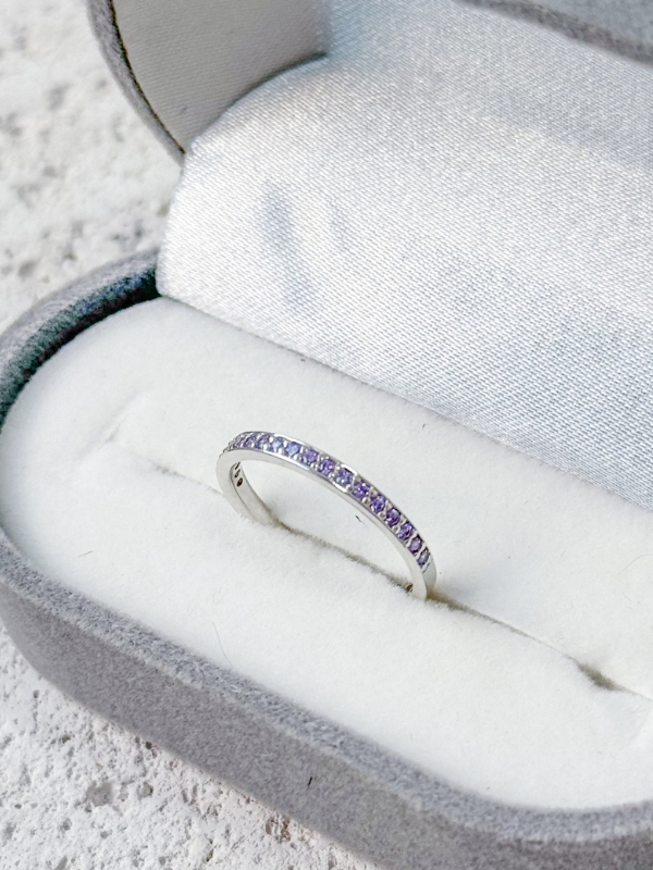 Formato Externo: reta com 15 zircônias cravejadas roxa clara