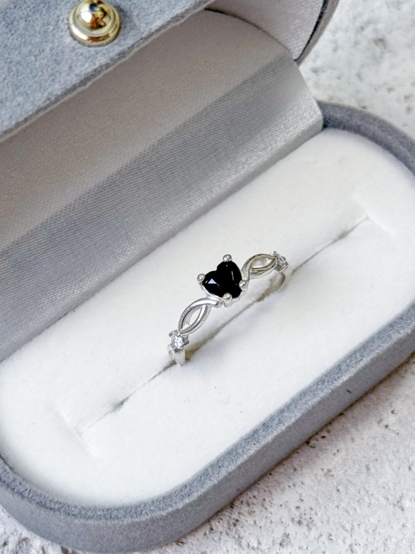 Formato Externo: Reto, polido, com uma pedra grande em destaque de coração preto.