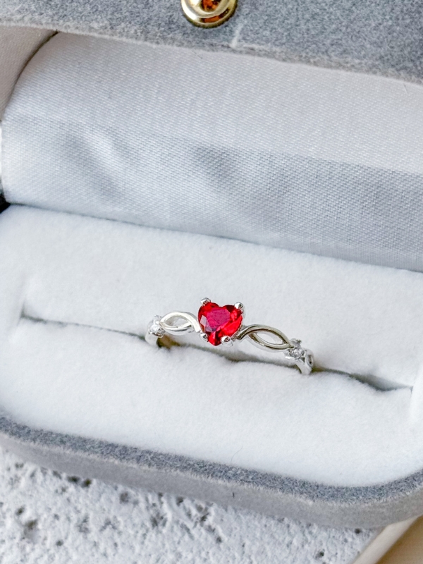 Formato Externo: Reto, polido, com uma pedra grande em destaque de coração vermelho.