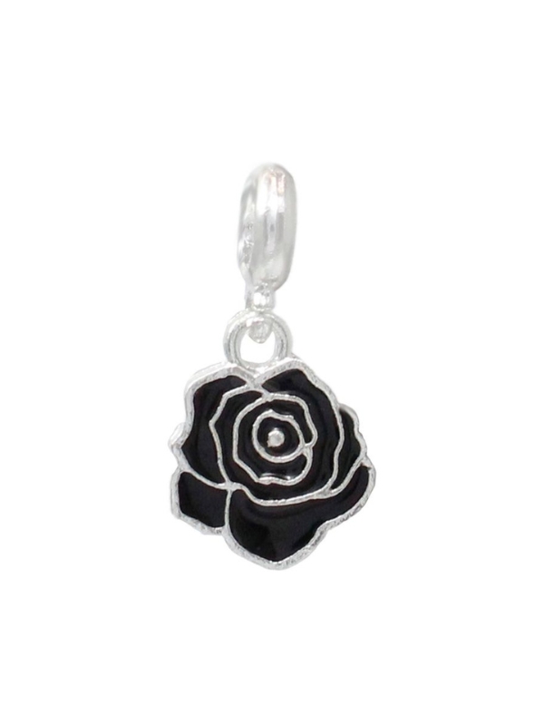 Berloque Rosa black - Folheado a prata