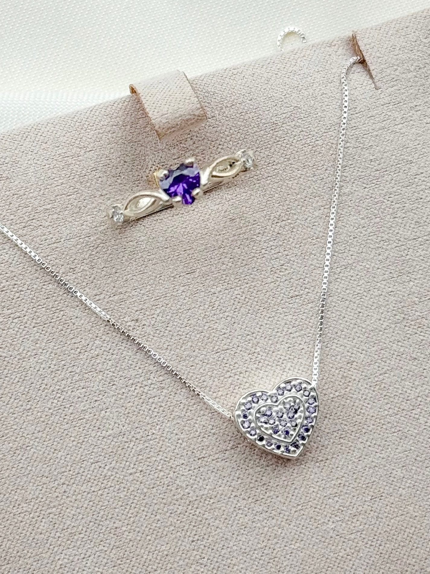 Formato Externo: Reto, polido, com uma pedra grande em destaque de coração roxo
