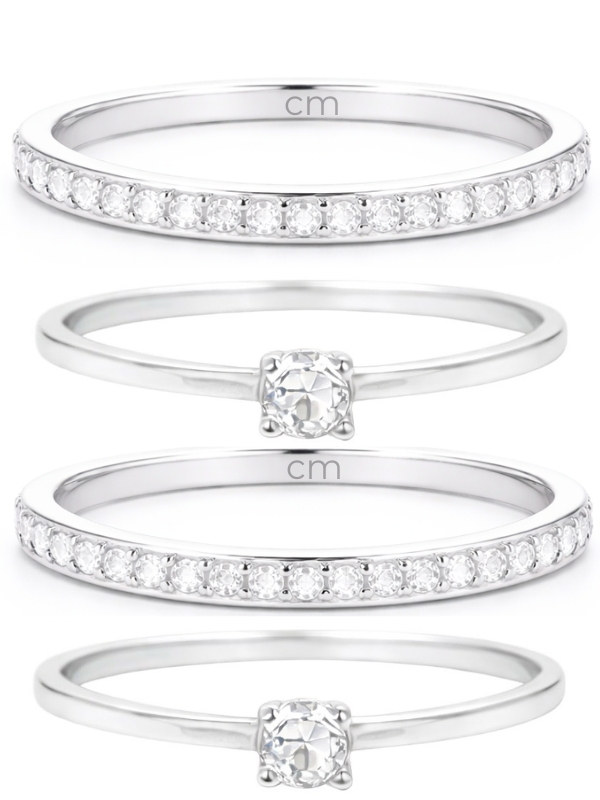 Formato Externo: reta, com friso central e com pedras de zircônia cravejada no centro.