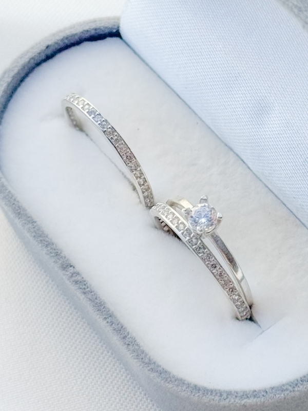 Par de Aliança Bella + Solitário Encanto cristal - Prata 950