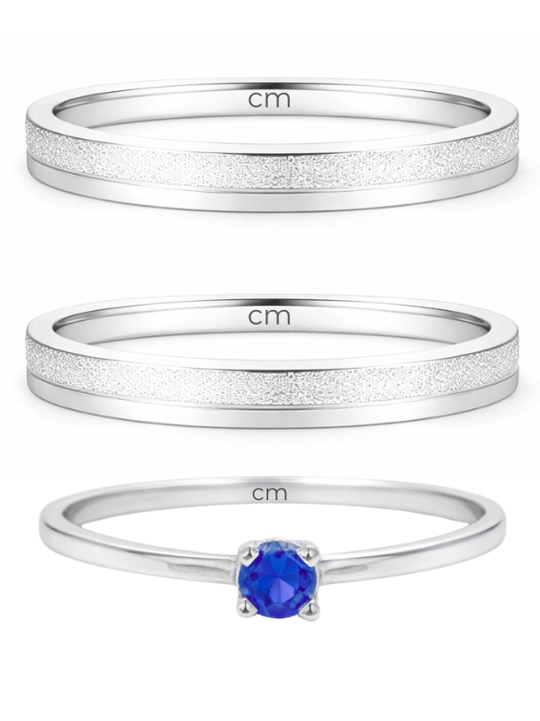 Par de Aliança Alice + Solitário azul - Prata 950
