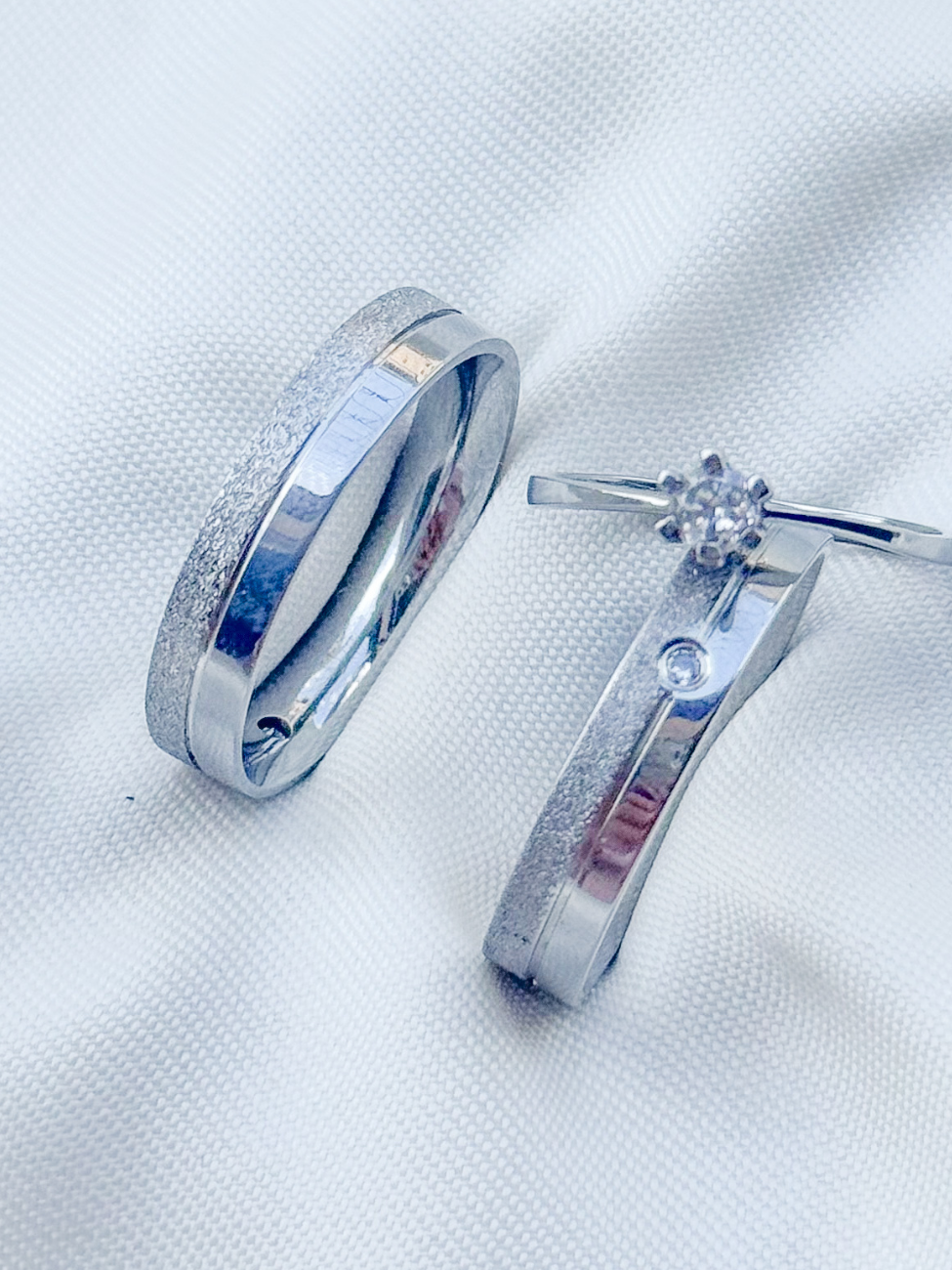 Par de Aliança Capadócia com pedra + Solitário - Aço Inox