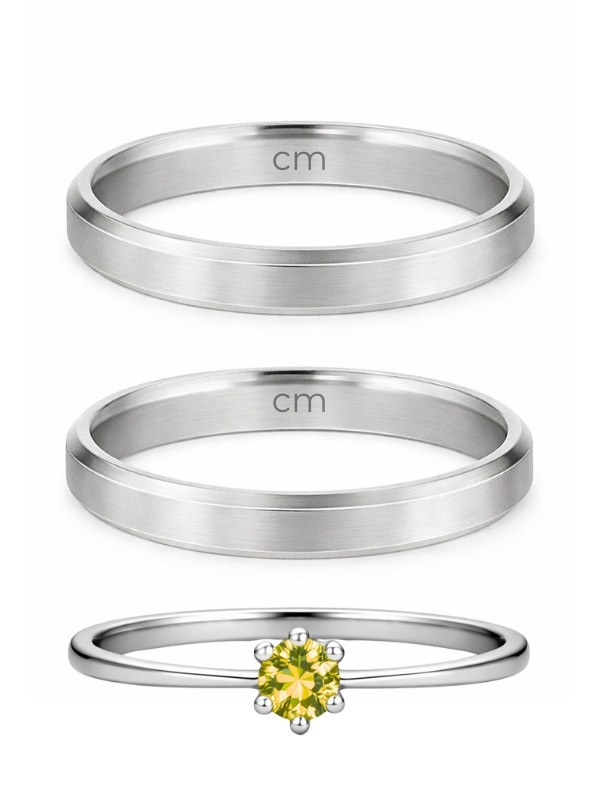 Par de Aliança Chanfrada + Solitário Amarelo - Aço Inox