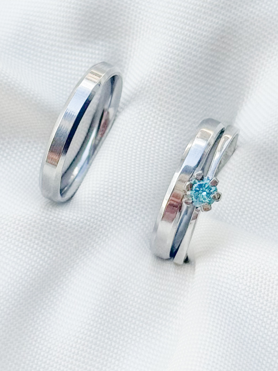 Par de Aliança Chanfrada + Solitário azul - Aço Inox