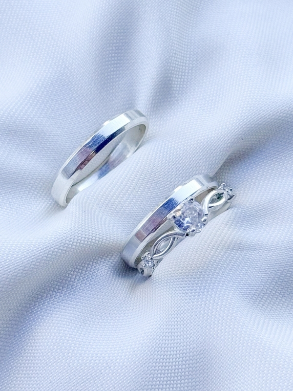 Par de Aliança Chanfrada + Solitário Love cristal - Prata 950
