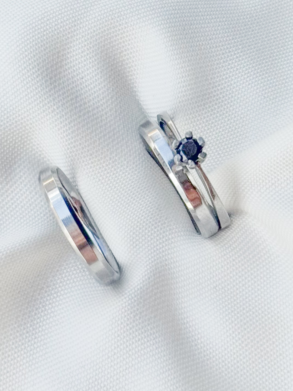 Par de Aliança Chanfrada + Solitário Preto - Aço Inox