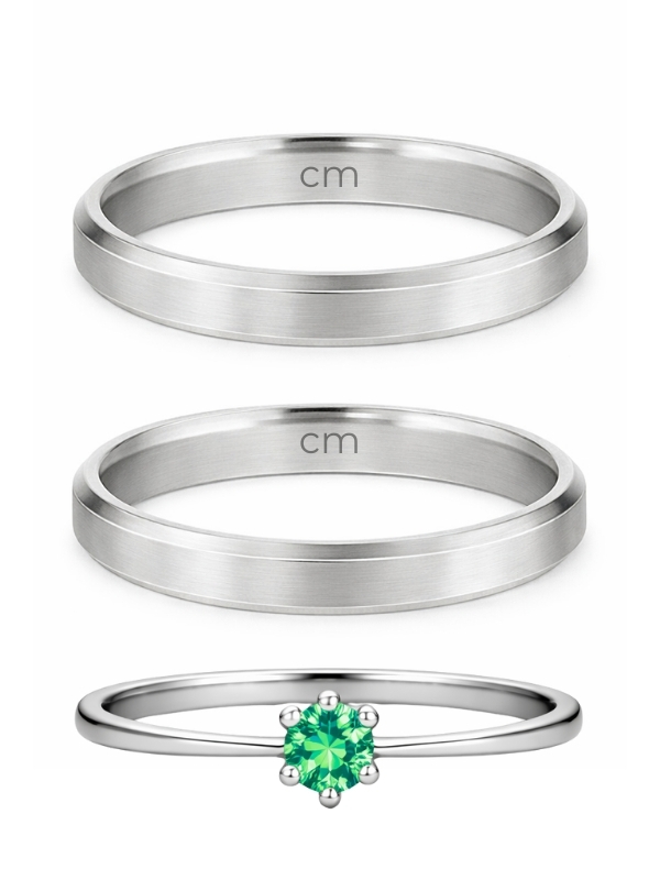 Par de Aliança Chanfrada + Solitário Verde - Aço Inox