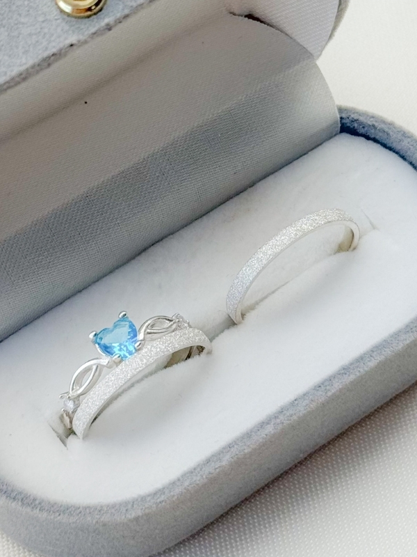 Par de Aliança Diamantada 2mm + Solitário Love Azul - Prata 950
