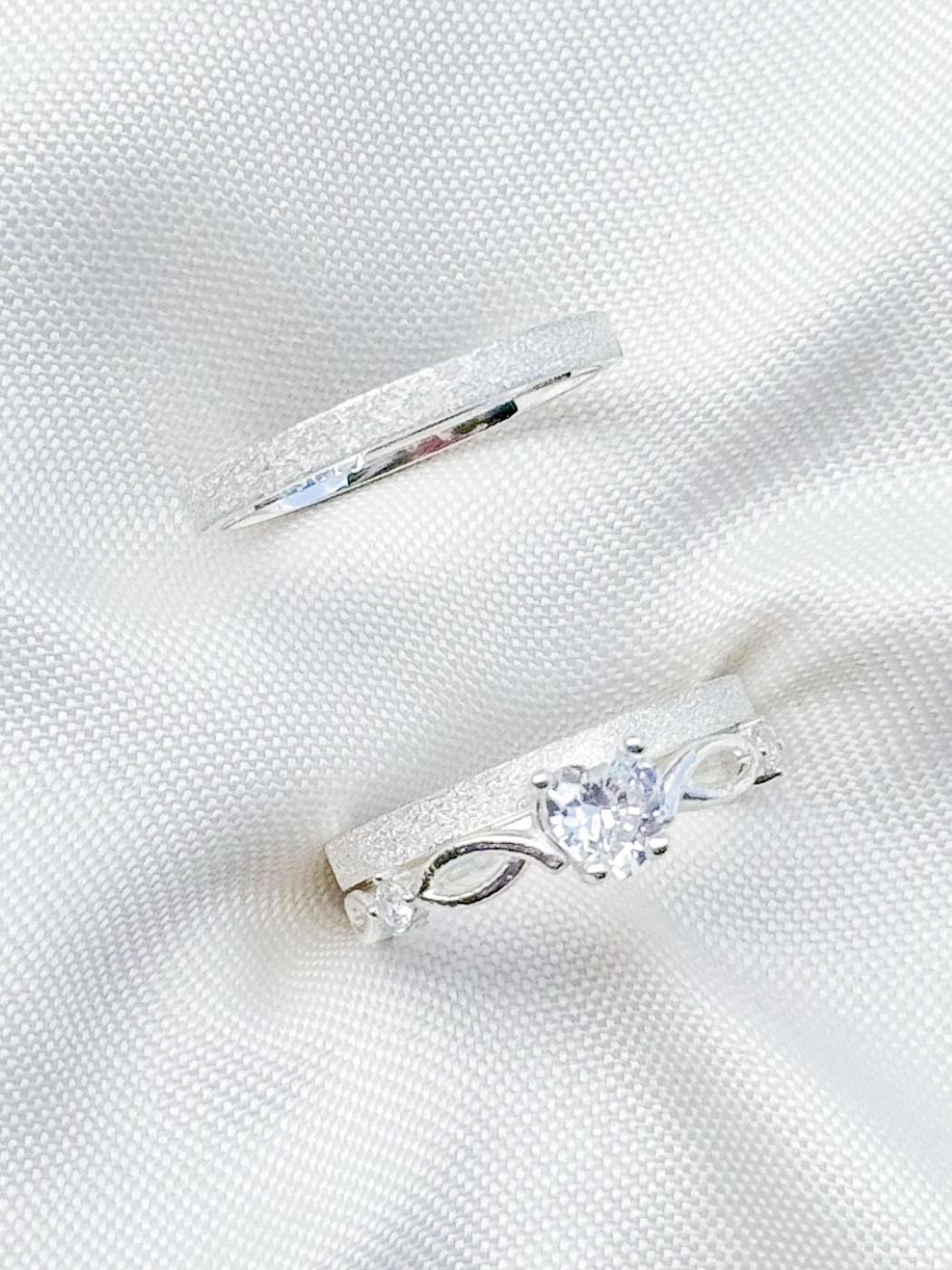 Par de Aliança Diamantada 2mm + Solitário Love Cristal - Prata 950