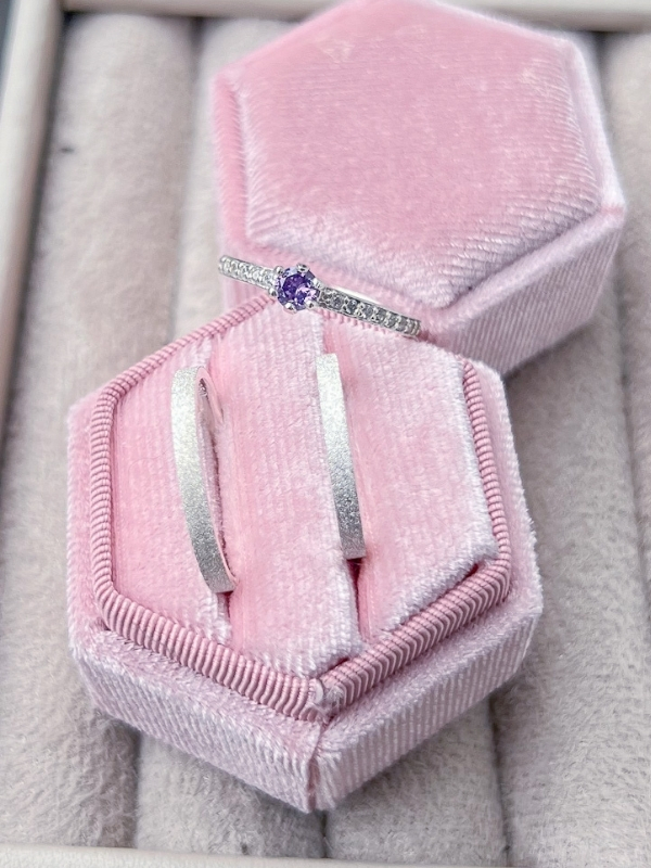 Par de Aliança diamantada 2mm + Solitário Rapunzel Roxo - Prata 950