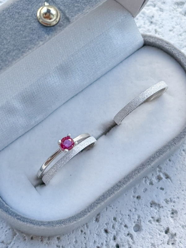 Par de Aliança Diamantada 2mm + Solitário Rosa - Prata 950