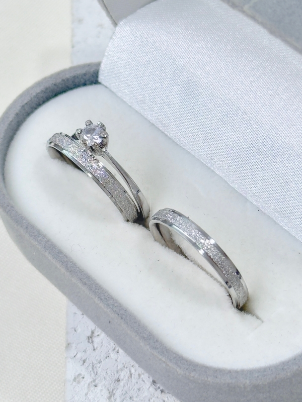 Par de aliança diamantada 3mm + solitário - Aço Inox