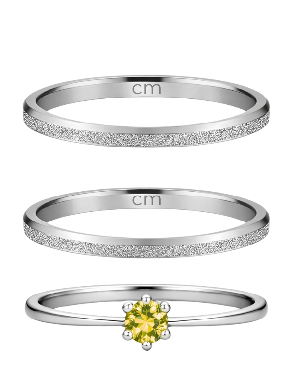 Par de aliança diamantada lover 2mm + Solitário Amarelo - Aço Inox