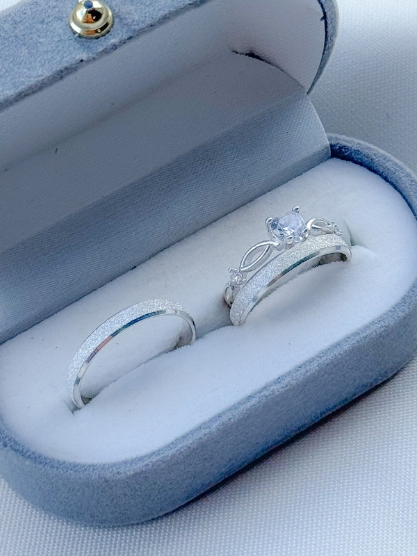 Par de aliança diamantada + Solitário Love Cristal - Prata 950
