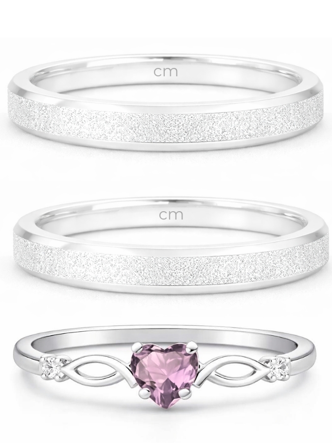 Formato Externo: Reta, com zircônias cravejadas e pedra de zircônia em formato de coração.