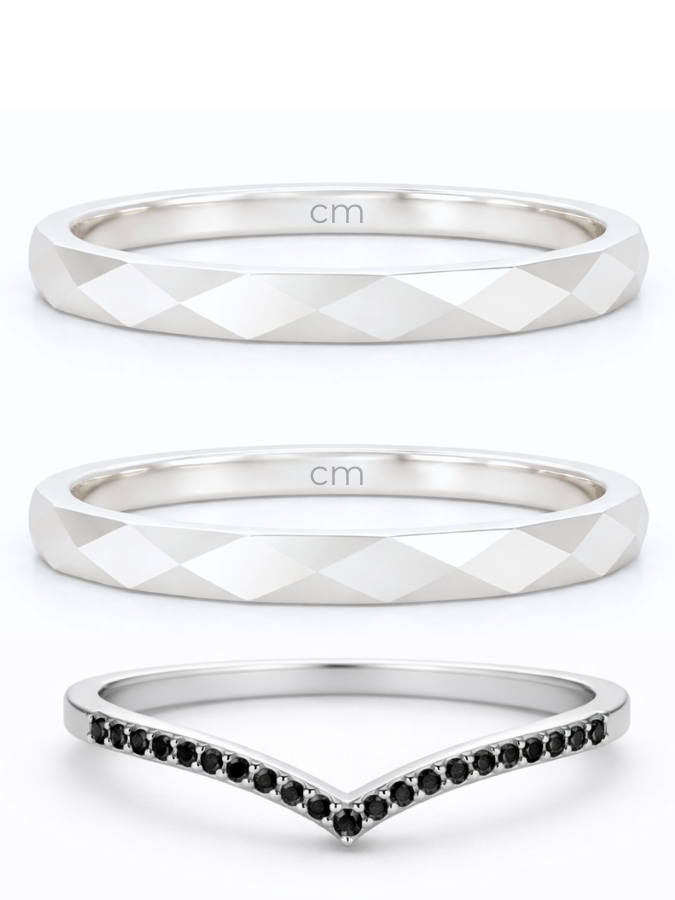 Par de Aliança Geométrica 2mm + Solitário V Black - Prata 950