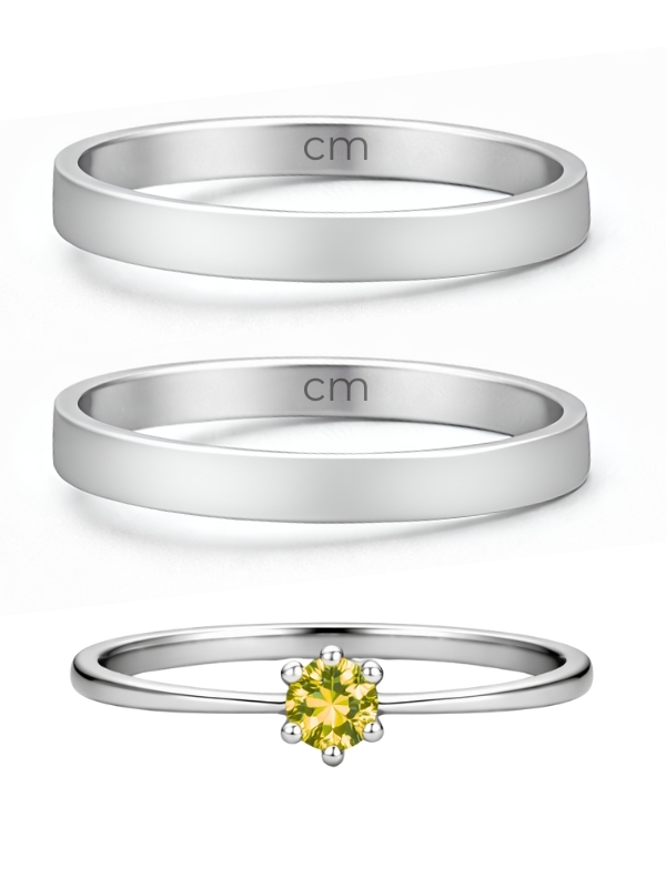 Par de Aliança Holanda 2mm + Solitário Amarelo - Aço Inox