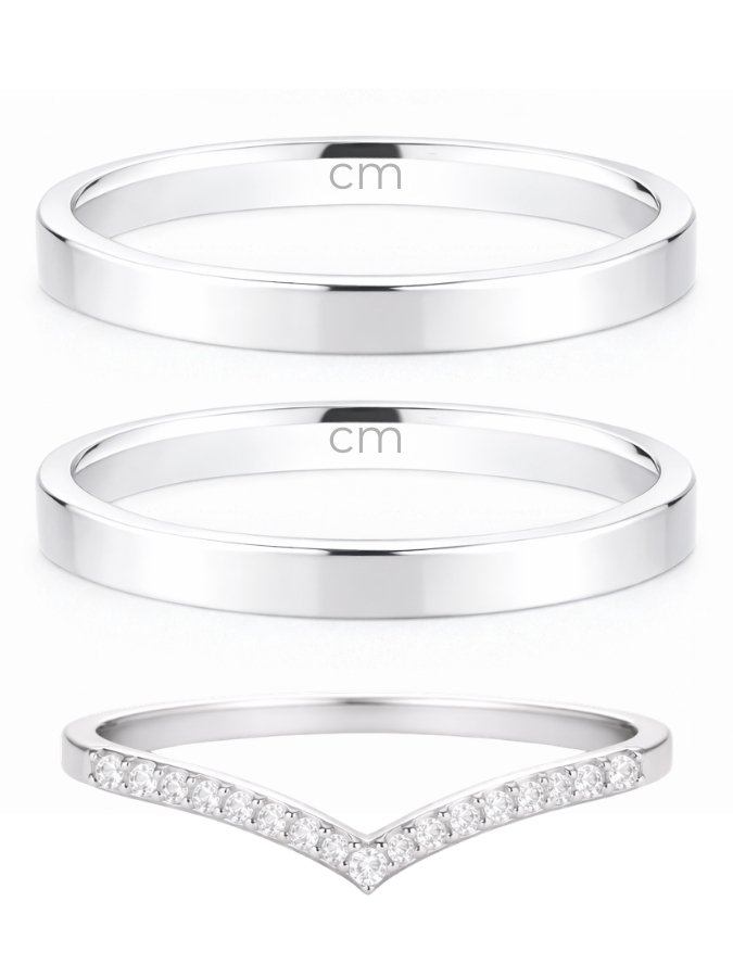 Par de Aliança Holanda 2mm + Solitário cravejado em V - Prata 950