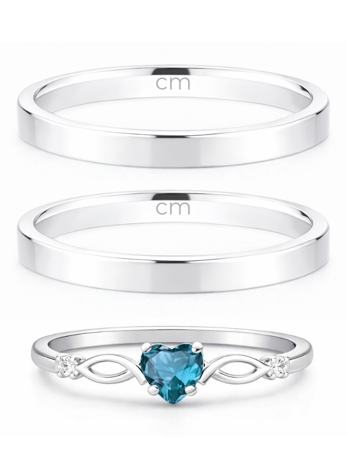 Par de Aliança Holanda 2mm + Solitário Love Azul Claro - Prata 950
