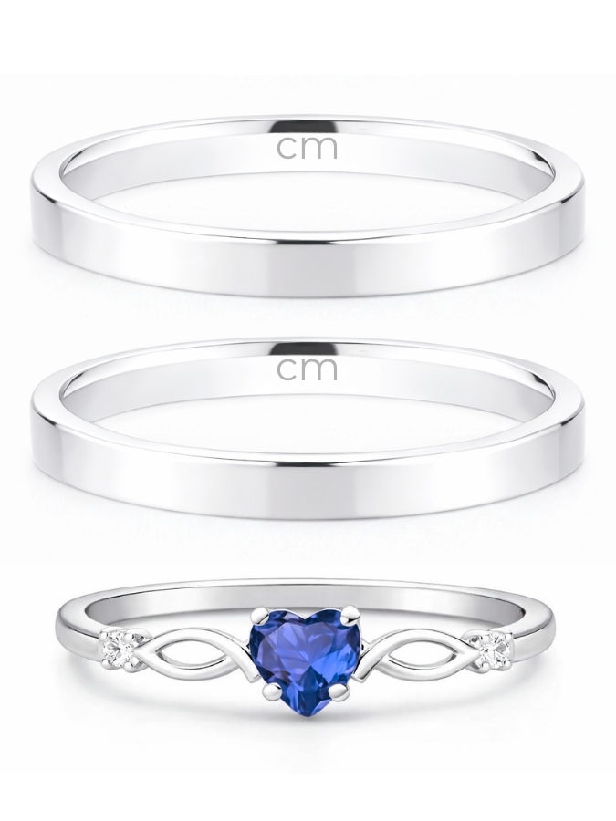 Par de Aliança Holanda 2mm + Solitário Love Azul Royal - Prata 950