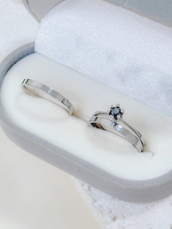 Par de Aliança Holanda 2mm + Solitário Preto - Aço Inox