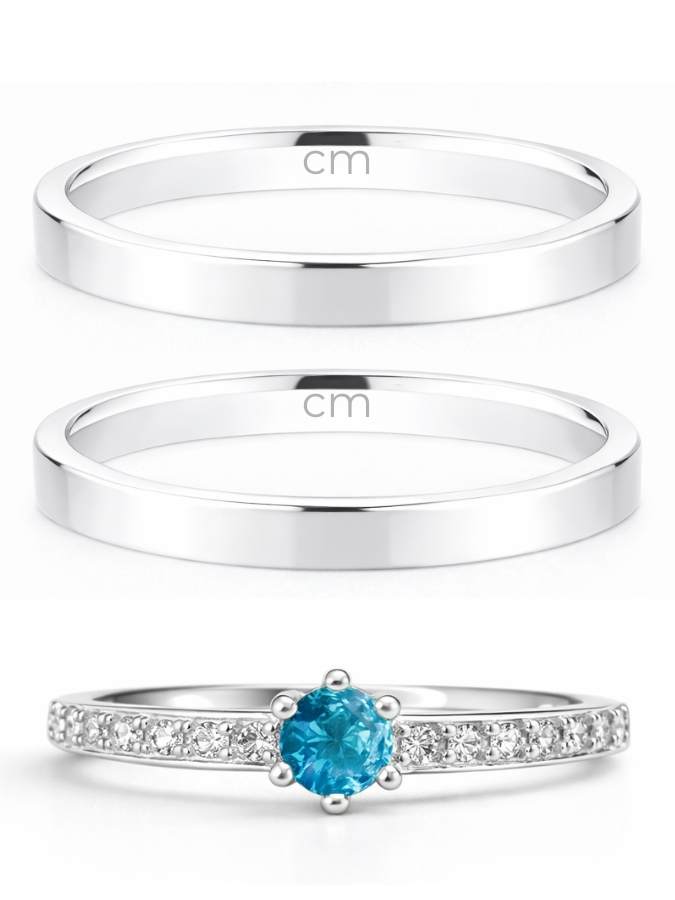 Par de Aliança Holanda 2mm + Solitário Romantic Azul - Prata 950
