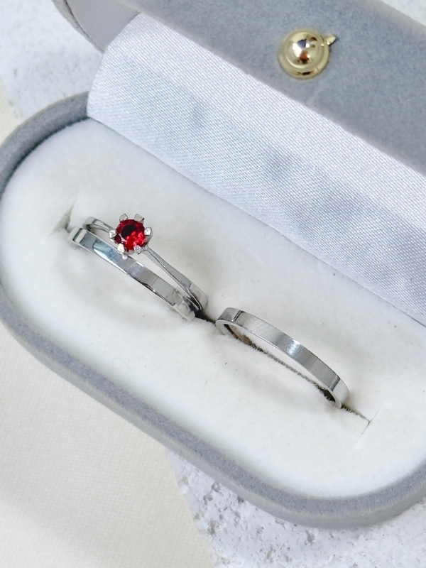 Par de Aliança Holanda 2mm + Solitário Vermelho - Aço Inox