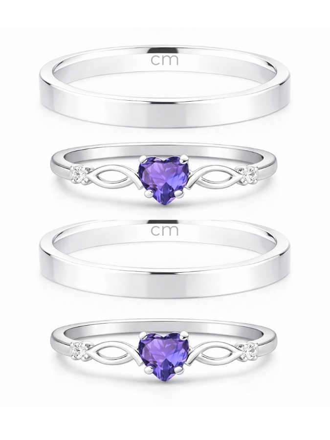 Par de Aliança Holanda 2mm + Solitários Love Roxo - Prata 950