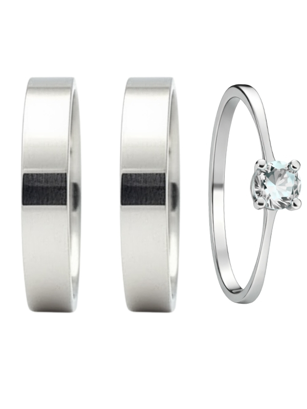 Par de Aliança Holanda 4mm + Solitário - Aço Inox
