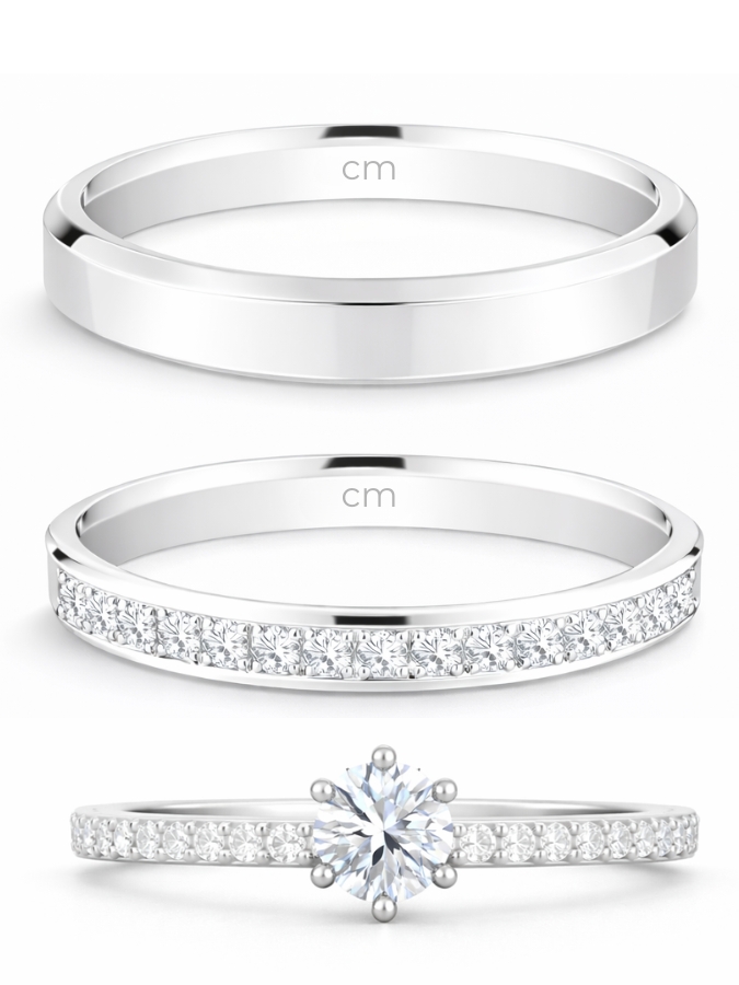 Par de Aliança Jessy + Solitário Crown - Prata 950