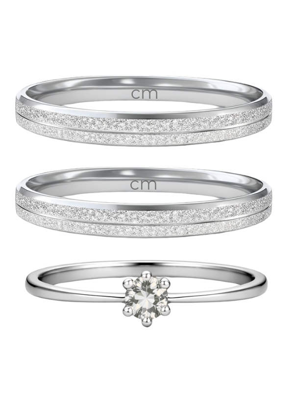 Par de Aliança Joy 3mm + Solitário Cristal - Aço Inox