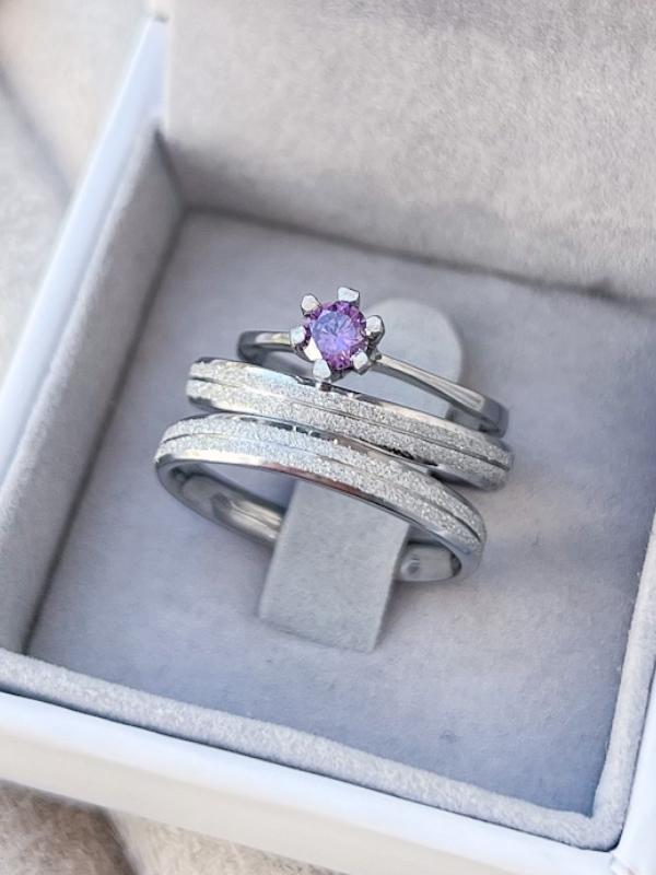 Par de Aliança Joy 3mm + Solitário Roxo - Aço Inox