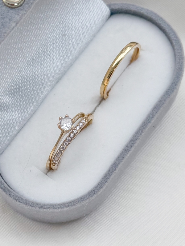 Par de Aliança Julieta 2mm com pedra + Solitário Sun - Moeda Antiga