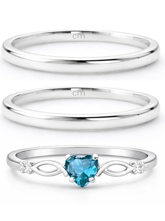 Par de Aliança Julieta 2mm + Solitário Love Azul - Prata 950