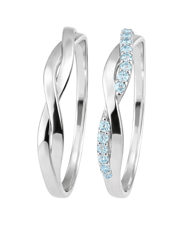 Acabamento externo: Abaulado, polido e trançado e um dos modelos cravejado com zircônias.