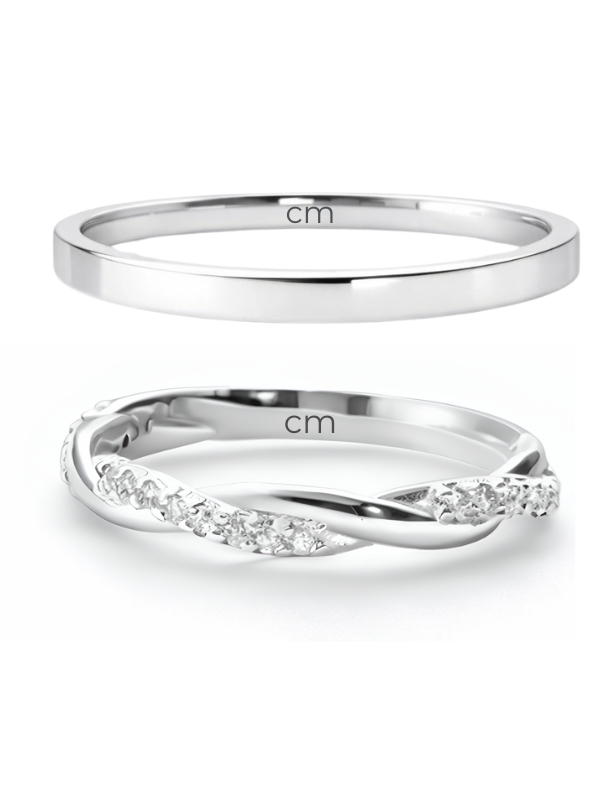 Acabamento externo: Abaulado, polido, trançado cravejado com zircônias. Outro modelo reto e polido