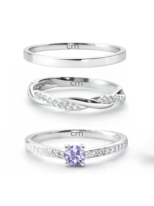 Par de Aliança Mônaco com pedra e Holanda + Solitário Romantic roxo - Prata 950