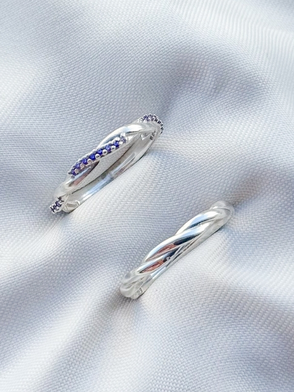 Par de Aliança Mônaco com pedra roxo - Prata 950