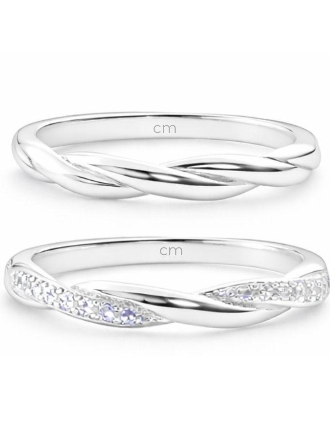 Acabamento externo: Abaulado, polido e trançado e um dos modelos cravejado com zircônias.