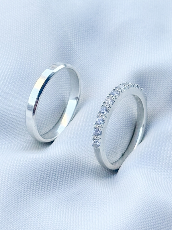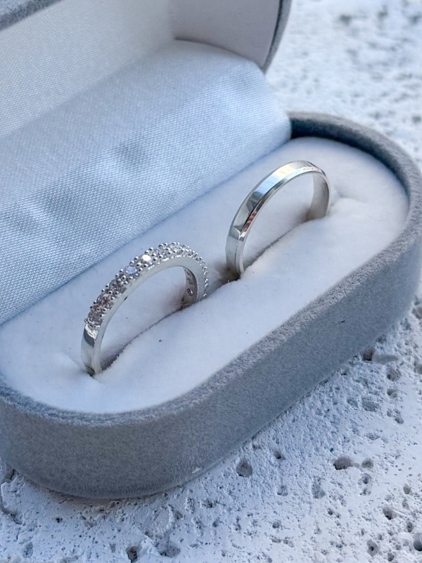 Par de aliança Nobre Chanfrada com pedra - Prata 950