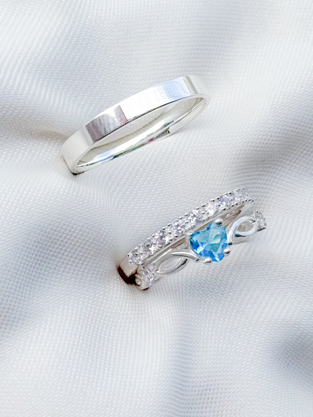 Par de aliança Nobre holanda com pedra + Solitário Love Azul - Prata 950