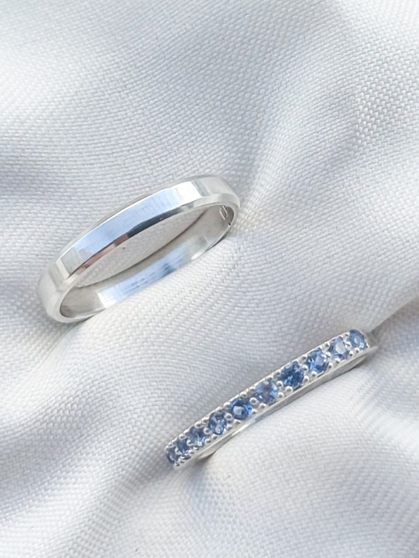 Formato Externo: Reta, lisa e com bordas chanfradas. E outro modelo cravejado meia volta de zirconias.