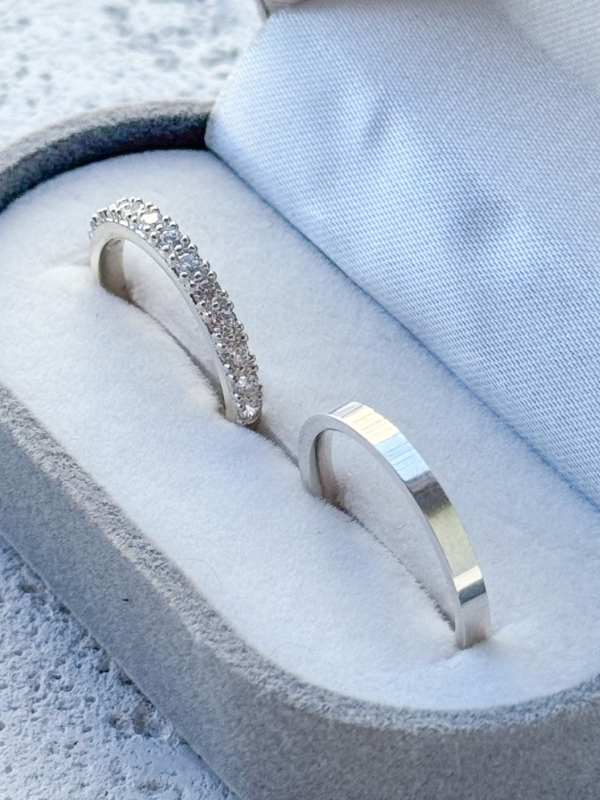 Formato Externo: Reta, lisa e outro modelo cravejado meia volta de zirconias.