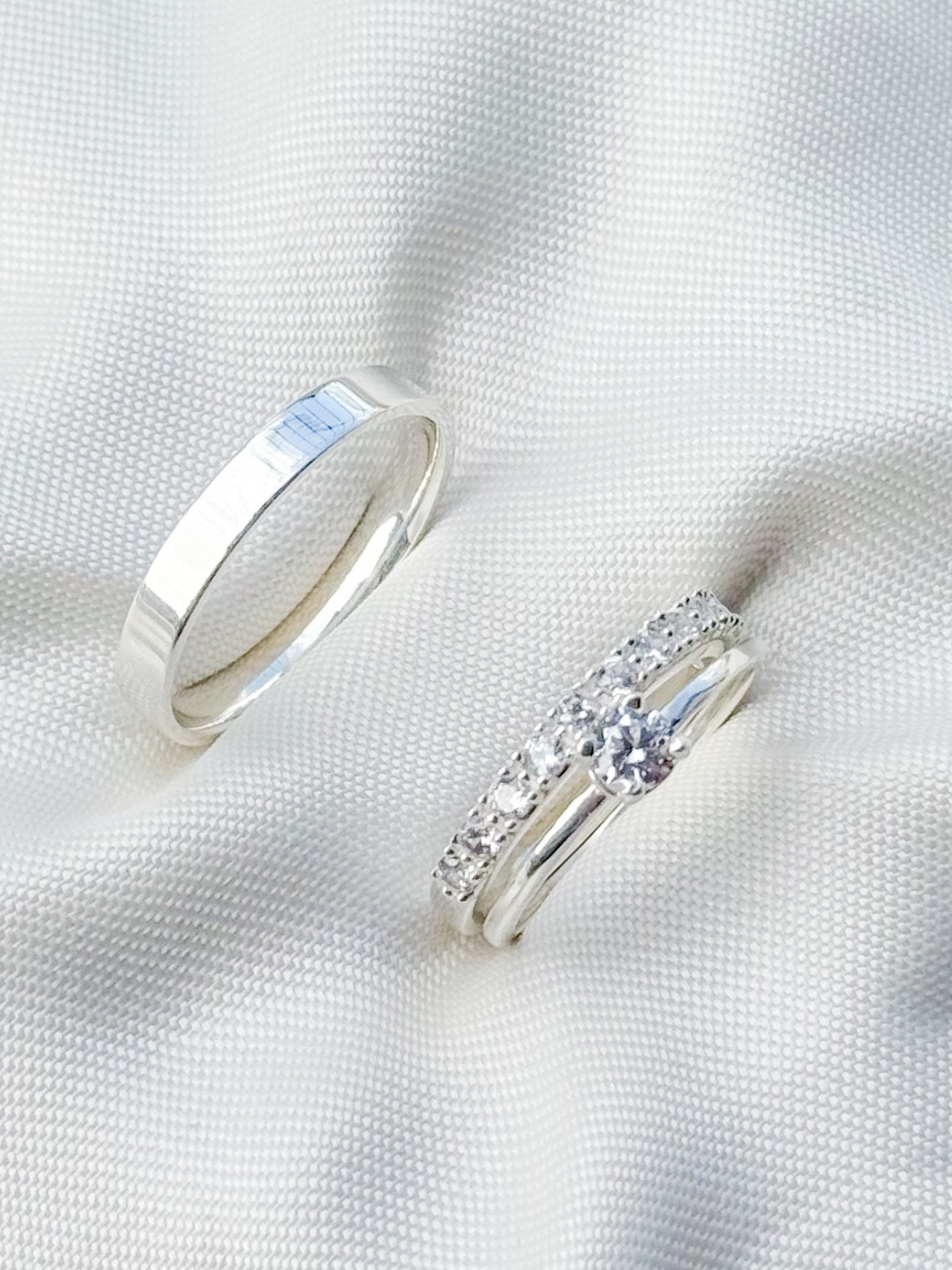 Formato Externo: Reta, lisa e outro modelo cravejado meia volta de zirconias.