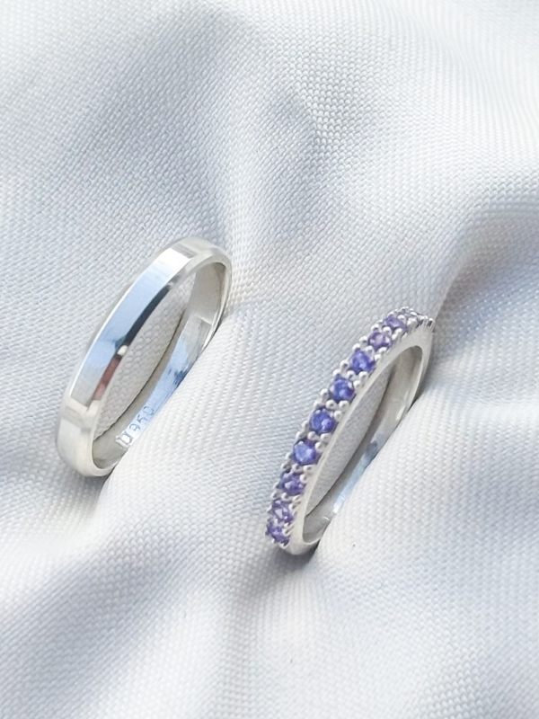 Par de aliança Pace Purple - Prata 950
