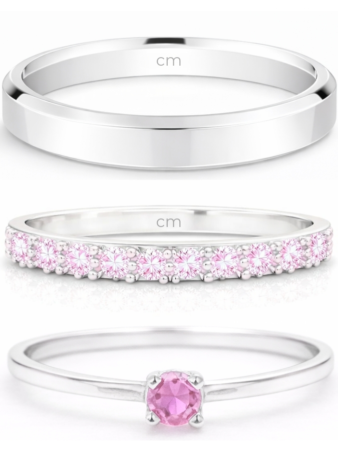 Par de aliança Pace rosa + Solitário encanto rosa - Prata 950